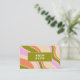 A groovy retro 70's style abstract style business card featuring eye catching abstract wavy lines and a chunky retro typeface for your name. Colourful and bold in hues of pink, green, orange and tan.