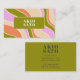 Boho Retro Abstract Wavy Lines Pink Green Business Card