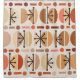 A vintage style mid century modern pattern with geometric bowls shapes, dots and lines, as well as sputnik starbursts. Half shells with retro atomic age sputnik starbursts. Tan, beige, light brown.
