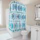 Boho Retro Bowls Lines Turquoise Shower Curtain