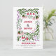 Boho retro branches and folklore flowers wedding Invitation. This lovely wedding invitation showcases a stunning combination of boho retro branches and charming folklore flowers. The frame is crafted with intricate retro branches in shades of dark and sage green, complemented by delicate lilac purple leaves. The vibrant magenta and blush pink flowers add a touch of romance to the design. On the back, a solid viva magenta colour creates a bold and captivating contrast. Get ready to invite your guests with this enchanting and unique wedding invitation.