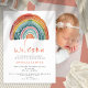 Boho Retro Coloured Rainbow Welcome Photo Birth Announcement