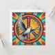 Blank card. Dove and peace sign done in a boho retro style. Red, blue and yellow vintage earthy colours.