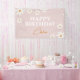 Boho Retro Pink Daisy Floral Happy Birthday Banner