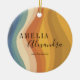 Bring a touch of retro charm to your business with this boho-inspired ceramic ornament, featuring abstract wavy lines in vibrant yellow and blue. The playful script adds a unique, vintage vibe that makes this ornament perfect for holiday promotions, corporate gifts, or business decor. Whether you're decorating for an event or offering it as a thoughtful keepsake, this ornament combines creativity and professional appeal, ensuring your brand stands out. Ideal for businesses looking to blend modern aesthetics with retro flair.