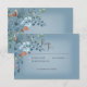 This wedding response card design features beautiful blue and burnt orange rust watercolor corner florals on a soft white blur rectangle placed on a dusty blue background. Soft and delicate; perfect for any season. Created by Simply Farmhouse Press.