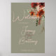 Boho Rust & Neutral Fall Floral Sage Green Wedding Poster