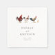 Boho and rustic wedding paper napkins featuring watercolor illustration of chickens and a chick.