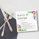 These elegant tropical wedding napkins are perfect for a modern summer wedding. The simple design features bloom yellow, purple, and pink flowers with elegant black typography on a white background.