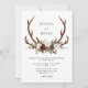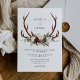 This chic boho rustic wedding invitation with antlers features the names of the bride and groom framed by stag antlers which are decorated with a watercolor burgundy floral bouquet. Please contact me through Zazzle Chat if you need design tweaks, more matching products, or other colorways.