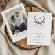 Boho Rustic Floral Antlers Wedding Photo Invitation