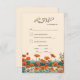 This beautiful boho bohemian with meal choice wedding RSVP card, features an ink drawing of poppies wildflowers with rustic warm colours, orange and teal, inspired in traditional Japanese art technique ukiyo-e or Japanese wood block prints. Personalise this beautiful RSVP card with your own text.