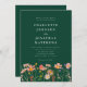 Boho chic floral Fall green wedding invitation with watercolor Wildflower Meadow hand painted flowers. This elegant terracotta dark green Wedding Invitation with RSVP wedding website QR code, a stunning blend of autumnal charm and elegant sophistication. This watercolor design showcases hand-painted wildflowers in a vibrant garden meadow, with a rich palette of burnt orange, terracotta, brown, purple, yellow, coral, burnt umber, peach, and soft pink, capturing the warmth and beauty of the fall season on an emerald dark green background.