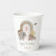 Boho birthday party cups with watercolor safari animals and a neutral arch rainbow with pampas grass. Personalise with the child's age and name.