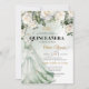 Boho White Dress & White Roses Greenery and Gold Quinceanera invitation