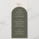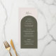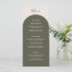 Introduce your reception dining with this elegant bohemian menu card, designed to coordinate with the Sage Green Rustic Arch Wedding Collection while offering a fresh twist on the signature look. The front features a basic dark green arch curve that gracefully frames your meal details, including appetizers, main course selections, and desserts, all set against a soft beige background. Retro design. This subtle variation creates a rich, natural backdrop that lets your menu information take centre stage.