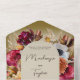 AVAILABLE WITH OR WITHOUT A QR CODE TO SCAN IN THE RSVP AREA. This simple yet elegant design has a wreath of boho burnt orange rust, fuchsia pink, white, maroon, and yellow gold flowers on a soft white blur overlay on a olive green background. The front flap contains the bride and groom's first initials. This design is available with or without dinner options at Simply Farmhouse Press on Zazzle. Add a QR code to your invitation so that gusts can quickly access your wedding Website for details, directions, menu options, and more, or add your gift registry Web URL. Personalised All-In-One invitations are a unique combination of both a beautifully printed custom invitation with an easy to tear off perforated RSVP postcard. And they are so easy to use! You simply fold, then seal the back flap with the three included clear stickers, and mail. And when your guests receive your custom invite, they just tear the perforated RSVP Card off and drop it back in the mail to you!