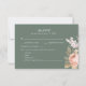 Elevate the wedding planning experience with our Boho Sage Green Peonies Wedding RSVP Card. This card allows your guests to respond to your invitation and provides menu selection and dietary preference options to ensure a personalized dining experience. On the reverse side, customize with the couple's address for a seamless return. Make every detail of your special day memorable with this beautifully designed and customizable RSVP card.