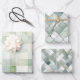 These wrapping paper sheets feature three different coordinating boho watercolor patterns of geometric designs in shades of sage green.