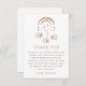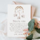 Send your heartfelt thanks with this sweet baby shower thank you card, featuring a hand painted boho sheep mobile in soft watercolor tones. The neutral design suits a variety of themes, including boho, rustic, and gender neutral baby showers. Personalise the message inside to express your gratitude to guests for their love and support. This charming thank you card pairs beautifully with matching invitations or shower stationery. Perfect for parents who love soft pastels and cosy, minimal style.