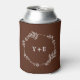 Boho Simple Brown Monogrammed Wedding Can Cooler