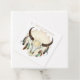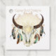 Boho Skull with Feathers favour tag can be used as a price tag or packaging insert. It features a Watercolor cow skull with feathers hanging from the horns. Behind it is an ornamental gold intricate design.