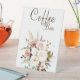 Boho Soft Coloured Rose/White Flowers Coffee Bar Pedestal Sign