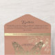 A one-of-a-kind bohemian spring peach all-in-one wedding invitation, featuring a romantic faux gold butterfly that symbolises spiritual rebirth, hope, and life. This elegant design exudes charm and deep meaning. Personalise it with your wedding details and RSVP information for a truly unforgettable touch.