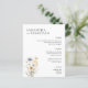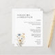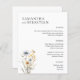 Rustic chic wedding menu with botanical accent featuring your names in elegant serif bold and a bouquet of meadow flowers in subtle palette of blue and grey flowers, sage green foliage with orange accents. Personalise with your wedding dinner details beneath.