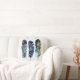 This two-sided throw pillow features watercolor illustrations of bird feathers in a boho style in rich, vibrant colours set against a light cream background. There are four feathers on the one side and three on the other.