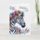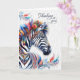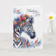 A beautiful bohemian-inspired zebra with colorful hues and patterns in the way of feathers and leafy botanical elements creates a unique thinking of you card - blank inside for your personal message.