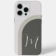 This custom phone case design has a stylish trendy vibe with its simple boho arch shape in neutral earthy colours of olive-brown and pale sage green against a white background. A large monogram initial in stylish script adds a fashionable pop of style on this elegant designer case. Personalise with your monogram initial.