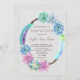 Modern, rustic card design featuring watercolour succulent cactus wreath with colourful feathers and handwriting fonts, on a white textured background. Use Customise tool to add your info. For matching items, please, visit my Succulent Cactus Wreath Wedding Collection.