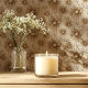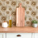 Add a touch of bohemian elegance to your space with this captivating sunburst wallpaper. Featuring a pattern of golden sunbursts accented with delicate lavender sprigs, this design creates a sophisticated and inviting atmosphere. This peel and stick wallpaper is easy to apply and remove, making it perfect for adding a touch of free-spirited style to bedrooms, living rooms, or any space that needs a touch of warmth and radiance.