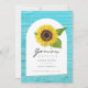 Boho Sunflower Arched Teal Wood Couples Shower Invitation