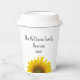 Family Reunion summer Barbecue paper cups with a boho yellow sunflower photo. With black customisable lettering, you can add your own text. Great for planning your family party or bbq celebration.