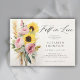 A gorgeous bouquet of dry flowers, sunflowers, roses, dry foliage and pampas grass, painted in delicate and romantic watercolor, with tones of earthy brown, yellow, green and pink create an elegant floral frame for this fall bridal shower invitation with a fall in love theme, that also features modern calligraphy. The design is a timeless blend of classic sophistication and the playful charm of flowers, perfect for the modern romantic. Ideal for a fall engagement, this invitation suits both the elegant bohemian bride and groom and those planning a garden fête, backyard celebration, or a formal event in a château's gardens. A beautiful choice for brides who seek a touch of nature's whimsy with refined elegance.