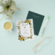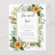 Beautiful watercolor yellow Sunflowers and sage green leaves and foliage feature on this country rustic boho themed wedding invitation.