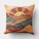 Boho Sunset Over Mountains -Retro Earthy Landscape Cushion
