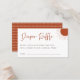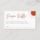 Boho Chic script graphic "Diaper Raffle", baby shower enclosure card. Cards features, line art sun illustration in rustic orange colour with matching orange pattern backing.