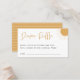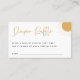 Boho Chic script graphic "Diaper Raffle", baby shower enclosure card. Cards features, line art sun illustration in rustic yellow colour with matching yellow pattern backing.