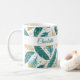 Boho Teal and Gold Feathers Script Name Coffee Mug
