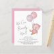 Boho budget-friendly baby girl shower invitation featuring a cute watercolor illustration of a pink teddy bear floating with balloons, and "We Can Bearly Wait" in a handwritten calligraphy script.