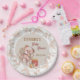 Almost too cute to eat off of, these adorable paper plates can easily be personalised with the name of mummy-to-be and the date of her baby shower prior to placing into your shopping cart. Each is bordered with a pretty boho floral design and in the centre is a cute teddy bear sitting on a chair with presents just waiting to be opened.