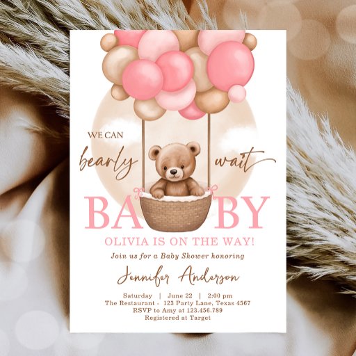Boho Teddy Bear Girl Pink Bearly Wait Baby Shower Invitation