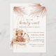 Modern Minimalist Gender Neutral Boho Teddy Bear Guitar "we can bearly wait" baby shower invitation. feature design watercolor teddy bear sitting on the boho swing playing the guitar decoration with pampas grass.