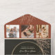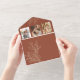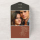 Modern, bohemian, minimalist burnt orange terracotta black and white all-in-one wedding invitation with custom four pictures of the couple.