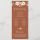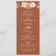 This boho fall floral wedding ceremony program is perfect for a bohemian style wedding. This program features watercolor florals in the colour scheme burnt orange, terracotta, & blush pink with sage greenery on a terracotta background. This trending colour palette is perfect for a late summer or fall wedding. Make this program your own by including your names and all of your wedding ceremony details. For further personalisation, please click the "customise further" link and use our design tool to modify this template.