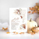 Fall In Love boho bridal shower invitations feature copper shades pumpkin, white orchids, soft brown pampas grass, terracotta exotic flowers and dried palm leaves. Botanical romantic and unique fall bridal shower invites.