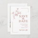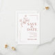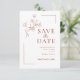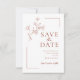 This wedding save the date features a minimalist and elegant design with a delicate floral illustration, clean typography, and simple corner accents. The front highlights the event details in a refined layout, while the back showcases a romantic couple’s photo with their names below. The overall look is modern, romantic, and sophisticated.